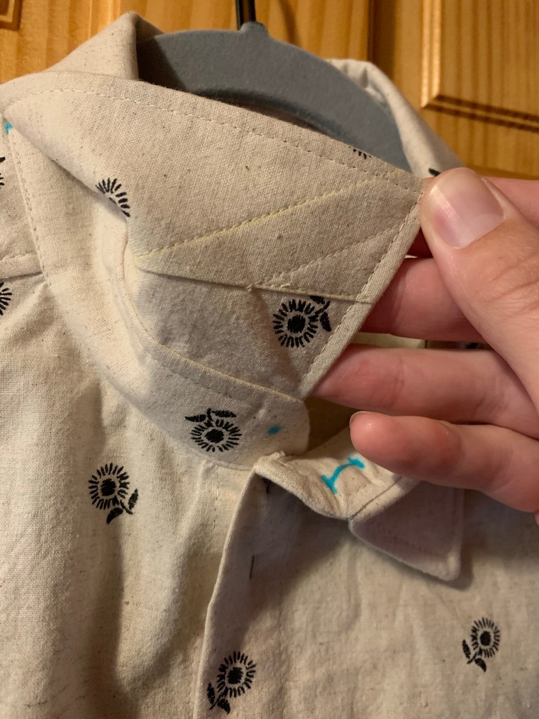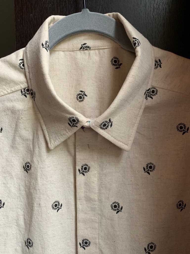 And here is where I emphasize that I am still very much a beginner when it comes to sewing and garment construction. With knitting, I have been doing that “professionally” for over a decade now. I understand garment construction, stitch patterns, how to modify the garment, what yarn to choose or how to make an appropriate substitution, how fiber content affects the final product, etc. etc. With sewing, I know how to follow the pattern and complete step 1, then step 2, then step 3. That’s about it. But this is all a journey, and right now that’s all I have needed to get from beginning to end. This latest shirt is the fourth button-up that I have made, and each one has been made using the exact same pattern (with minor tweaks each time) because I am too nervous to try a new one. And each time I sew a shirt, it is step by step. Whenever I complete a part of the shirt, I take a breath and think “whew, well at least that was the hardest part, the rest will be easy!”