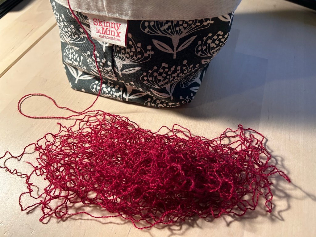 That’s the beginning of a lace shawl that I ripped out because I messed up where the center stitch should have been on one of the pattern repeats. It was easier to rip it all out and start over than try to unknit several rows to fix the mistake.