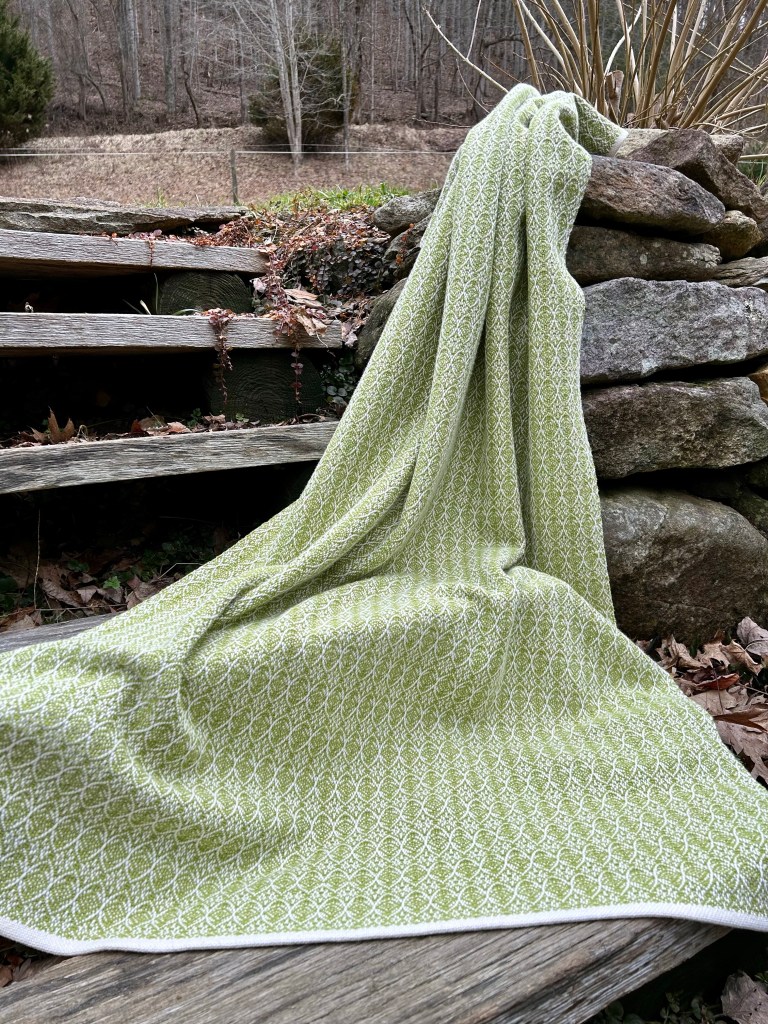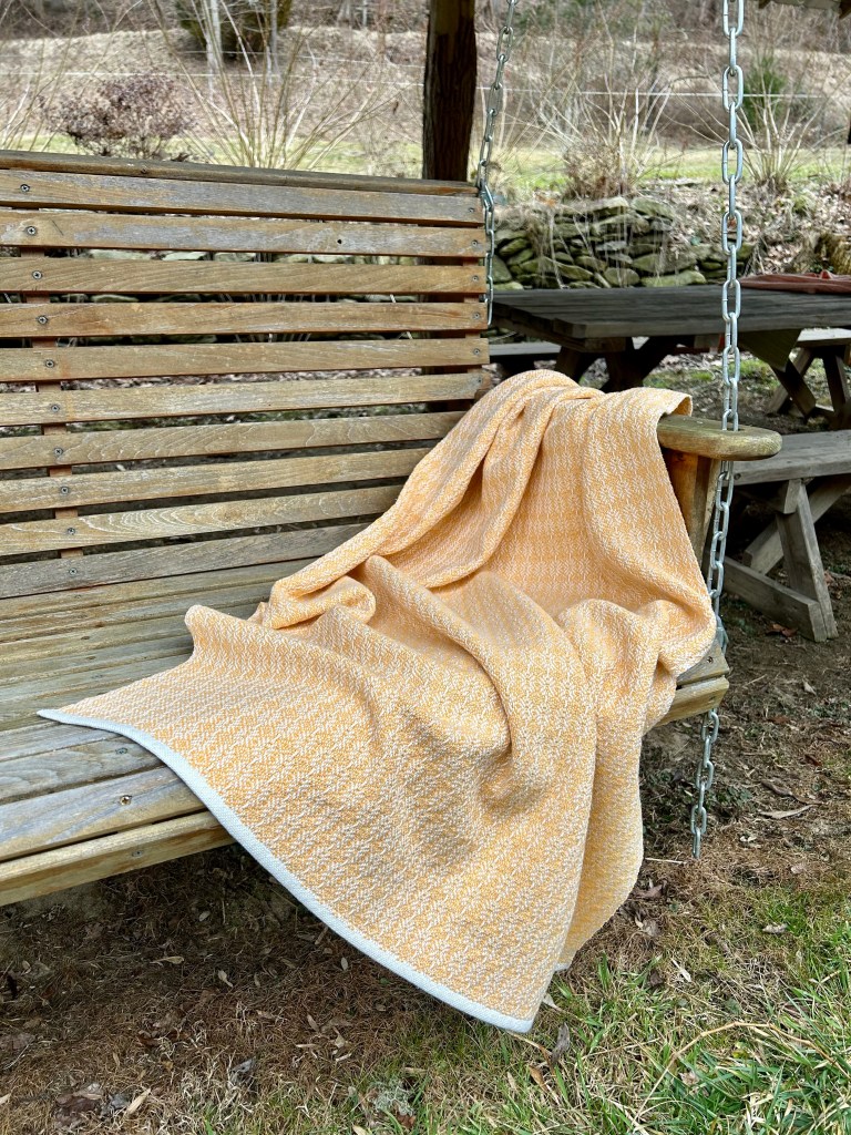 Of course with a blanket it really is just a large piece of fabric and front or back doesn’t really matter, it just determined for me to which side I pressed the hems. I did find it really ironic that I spent so much time developing the weaving patterns in the first photo without giving any thought to what the back of the fabric would look like, only to end up liking the back better by pure luck. Best laid plans, right?