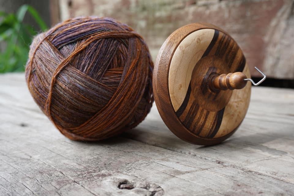I also returned to my drop spindles this year after recently coming across a post in a fiber spinning group on Facebook asking members to share their favorite drop spindle. I knew immediately which of my spindles is my favorite and I pulled up this photo on my phone of a Kundert top-whorl: