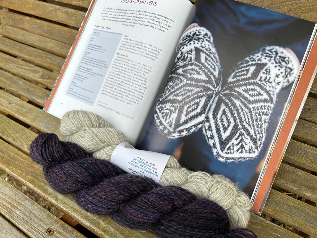 I love that both of these handspun yarns have some variation in color which will bring more life and movement to the pattern on the mittens. I will have to do some gauge swatching to see how the colors play together and determine whether I need to make any adjustments to the pattern to account for my gauge and hand size.