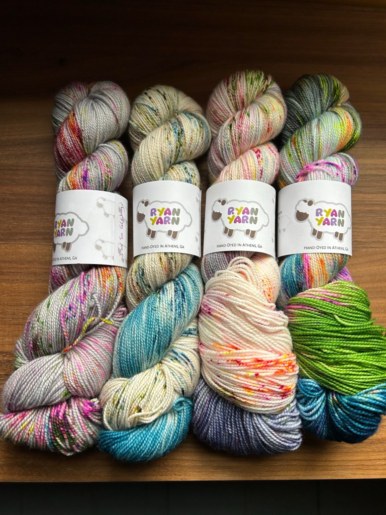 This gorgeous yarn is hand-dyed by Ryan of Ryan Yarn in Athens, Georgia and I ordered it from The Yarnery. This colorway is “Autumn Spice”, but his colors are so gorgeous that I also ordered “I’m So G(r)ay”, “Cloud Atlas”, “Design Your Universe”, and “Sea Castle”. It was just impossible to narrow it down any further than that.