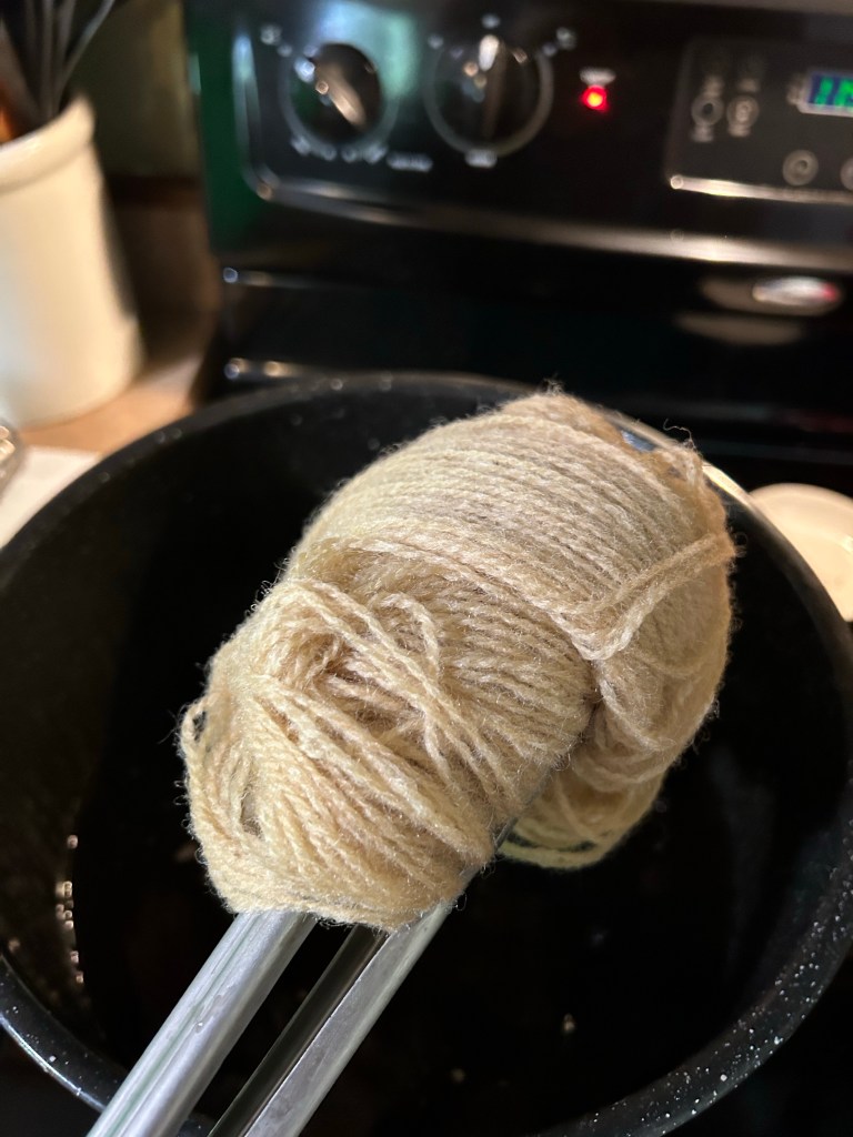 But I channeled my inner Katie and told myself to keep going, that this was just an experiment! See what happens. So I added some ferrous sulfate to the dye bath and let the yarn soak for 20 or 30 minutes to see what would happen. Et voilà!