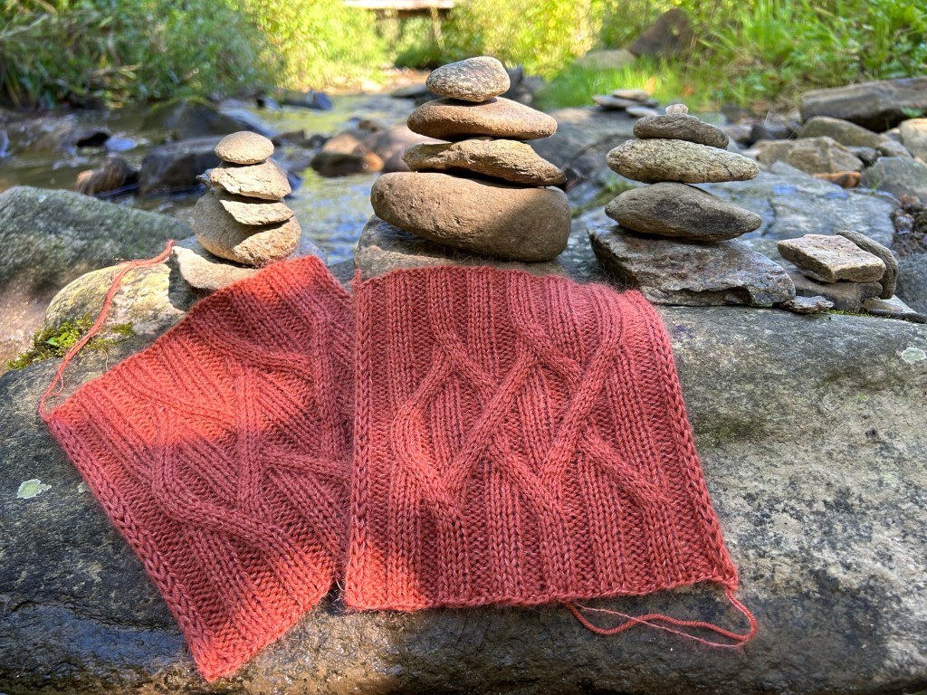 With all of the sewing and spinning I have been doing lately, my knitting has taken a back seat for a while, but I did knit a few swatches this week for an upcoming project. I designed a pattern for The Yarnery back in 2016 called Björklunden, meaning “birch grove” in Swedish and named after the northern campus of my alma mater, tucked away in Door County, Wisconsin. I was recently asked if I would be willing to knit a new sample with different yarn, and of course I said yes! I am already loving the fabric that this is creating and can’t wait to knit a large wrap with this stitch pattern.