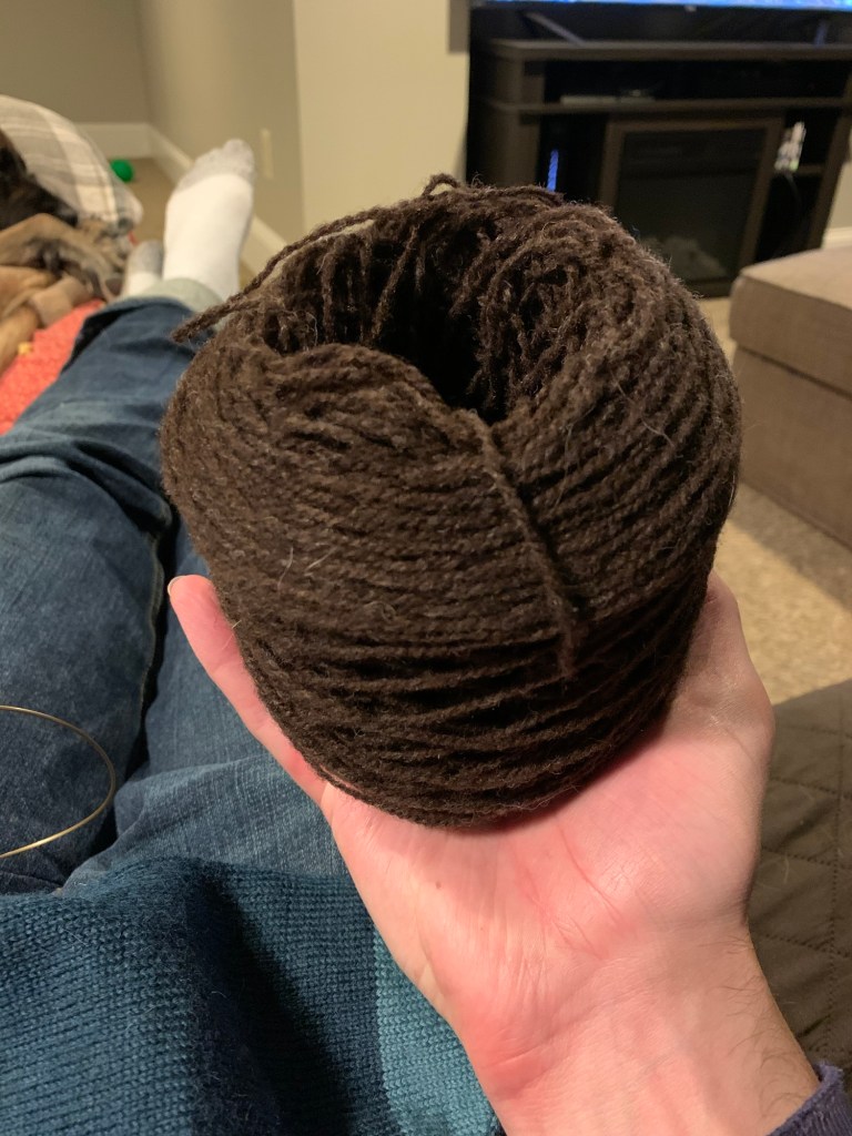 Even after reknitting everything, the ball of yarn above is what I had leftover from ripping out the yoke! That’s a lot of fabric that I had taken out that didn’t go back in. Not every success is a straight line, but I got there eventually. And now we have complementary sweaters to remember our time in Minnesota, and Kyle’s trip to Ireland.