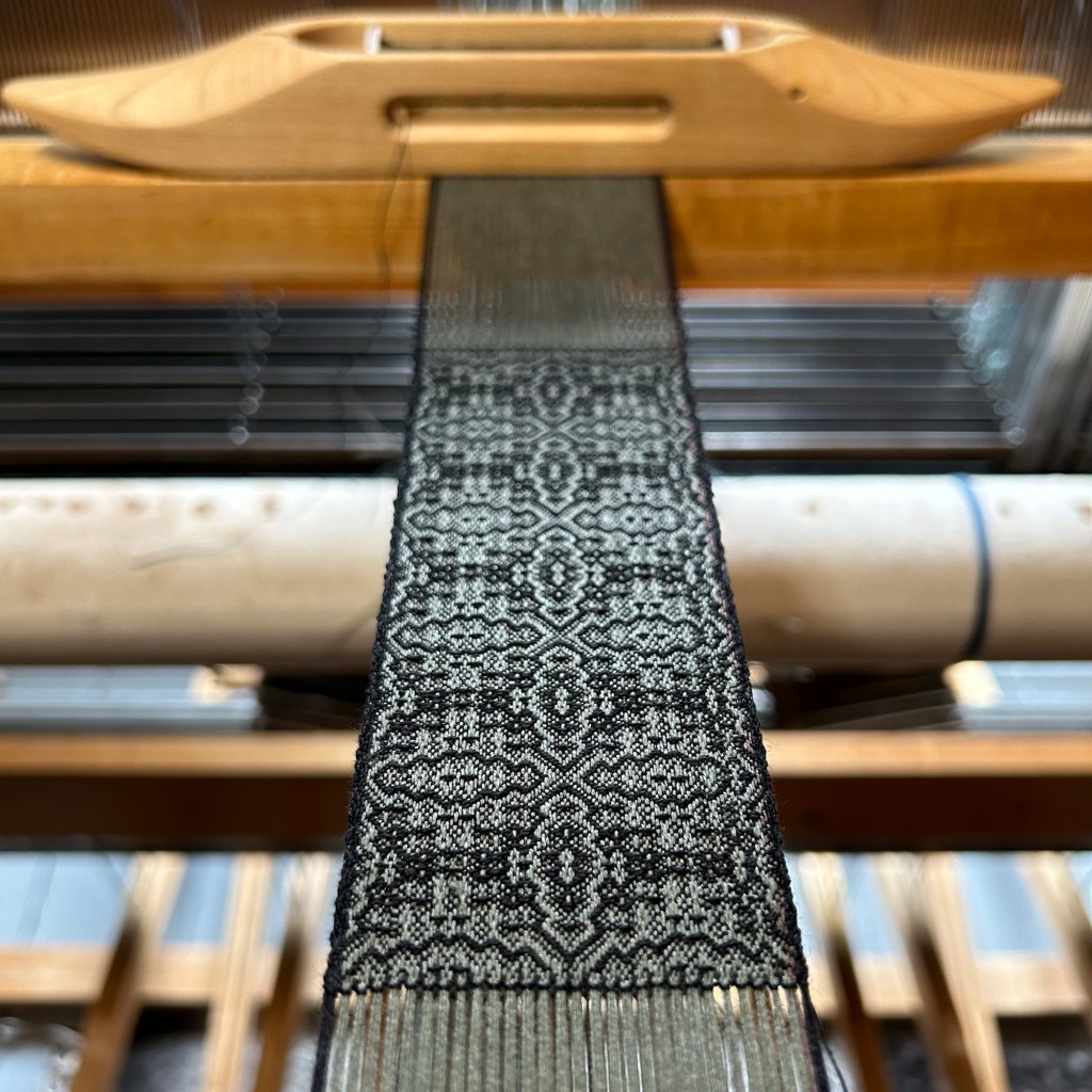 I designed ten patterns in total, and it’s so fun to see each pattern come to life right before my eyes. They’re so small that it only takes about an hour to weave each one and I think I should have enough warp left for about seven more. Then it’s time to wash and press them, cut them apart, and prepare them all to be listed for sale on my Etsy shop. Keep an eye out if you’re interested!