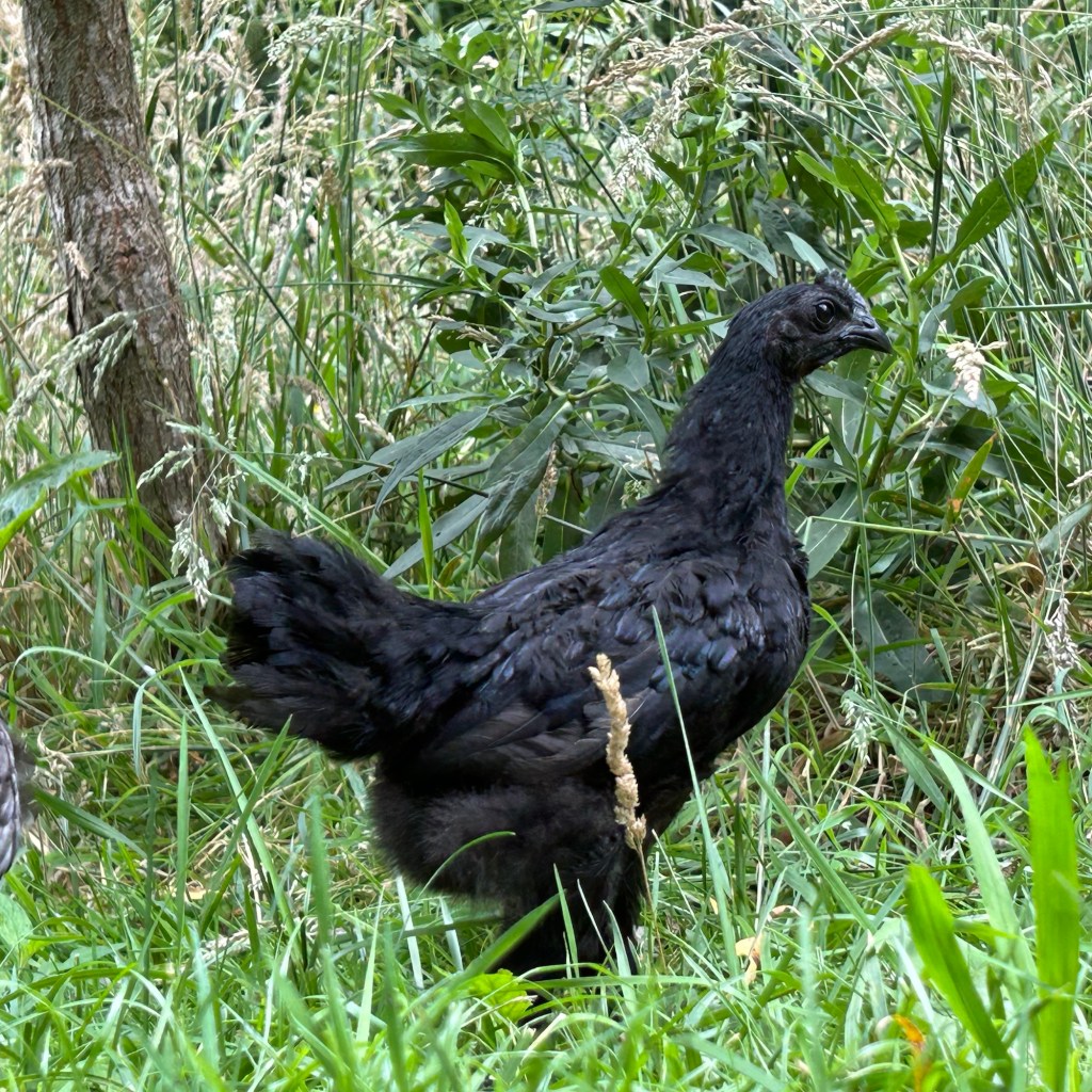 Jack and Sally are going to have the most beautiful, iridescent black feathers, I can’t wait to see them grow in more. I have my suspicions that Kyle is going to try to hatch a few of their eggs next year to keep them going.