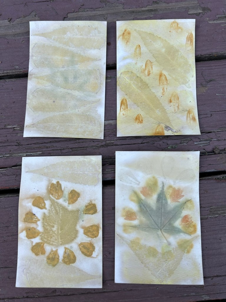 I was also lucky enough to attend an eco-printing workshop recently hosted by my friend Rebecca of Dancing Sun Cabins and we had a great morning collecting flowers and leaves from her property and printing on both paper postcards and cotton bandanas.