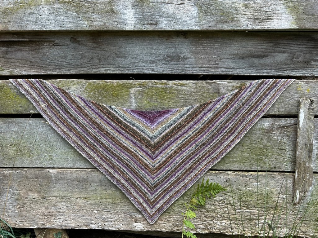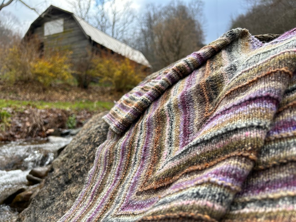 When we moved here in 2022, our realtor gave me a gift card to the local yarn shop as a welcome gift. It was over a year later that we actually made the trip there to see what they had to offer, and I came home with this beautiful ball of Noro Yukata – 50% silk, 25% wool, 25% nylon. Noro yarns are known for their long gradients of color, and this colorway drew my eye (any guesses why?). Knowing that the colors would obscure any type of stitch texture, I chose a simple pattern that would show off the stripes and would allow me to maximize the yardage. The Boneyard Shawl by Stephen West was just the ticket. Kyle and I have both knit this pattern before, but it’s so customizable that you can really use any yarn you want. Adjust your needle size to get an appropriate gauge for your yarn, and as long as you leave enough yarn for your bind off, you can knit until it’s as big as you want (or as big as your yardage allows).
