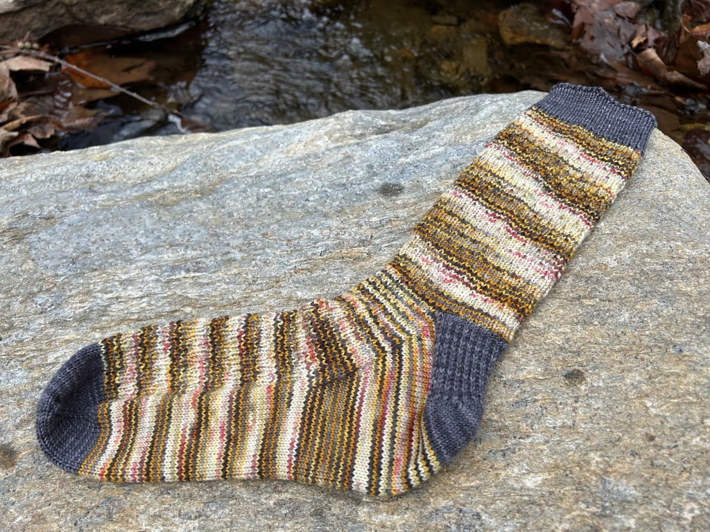 I have fallen into the habit of doing a contrasting heel/toe/cuff because for my own socks I need to be able to extend the yardage just a bit so I don’t run out of yarn. I like that this yarn came with a separate, complementary mini skein dyed specifically for this purpose so even if I didn’t need to supplement the yardage, I still had the option to do so. I just like the way it looks, so now I do it on almost all of the socks I knit.