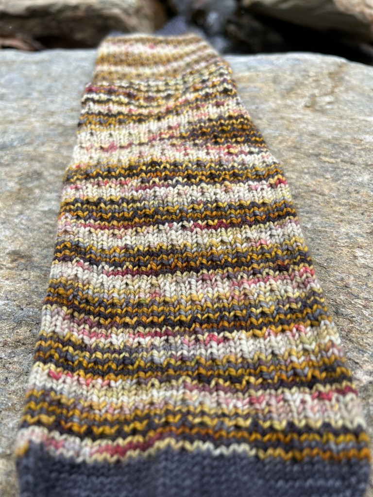 And as I am wont to do, I chose another very simple stitch pattern for these socks because anything more complicated would a) be obscured by the color and b) defeat the purpose of socks being what I consider a mindless project. The stitch pattern is ribbing-adjacent so it still gives a snug fit, allows the color to still be the focus, but gives a bit of textural interest. I’m caught unprepared for the second sock to be finished so soon and will need to go back into the stash post-haste to find more sock yarn to start my next pair. I almost always have a pair of socks on the needles, even if I’m not actively working on them. I’ve knit so many of them that I don’t have to consult a pattern and can just pick them up anytime, anywhere and I don’t have to worry about losing my place or being unsure about what comes next. It comes in handy if I find myself in unexpected need of something to occupy my hands.