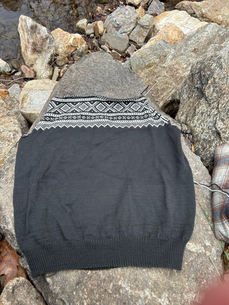 And this is where it has been sitting, forgotten, for THREE MONTHS because the pattern I charted should have gotten me all the way up to the shoulder seams, but the armholes still aren’t deep enough. This means I’m going to have to improvise some additional patterning to account for the extra length needed and instead of spending what will likely be a measly 10 minutes doing that, I just shoved it back into its bag again to think about how it has disappointed me yet again. Maybe by confessing this to you I’ll feel the shame of public ridicule strongly enough to pull out the graph paper and get a move on. Could this be yet another finished project for 2024? Realistically that feels unlikely, but at a minimum perhaps I’ll have an updated chart and a path forward. That would still feel like success to me. (We’re not going to mention the fact that I’m practically out of the main charcoal color and this yarn was discontinued. That’s just going to have to be a non-issue.)