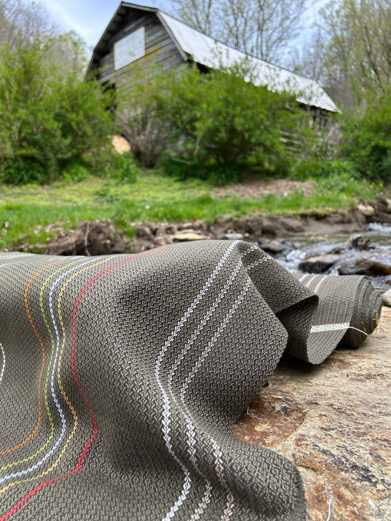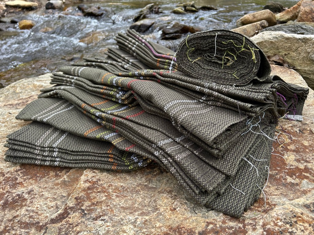 I’ve been working my way through the longest warp I have ever put on my loom for the past two months, and it is such a nice feeling to know that the finish line is right around the corner. I started with a warp of about 53 or 54 yards, which should be enough to make about 50 kitchen towels. This is now officially the second time I have rewoven one of my designs. I really enjoy the process of designing new towels, but there’s something nice about returning to something familiar. This is my “Field of Flowers” design that I was originally taking photos of in the light rain on the morning that Hurricane Helene hit our area and it feels like it has been both the longest and the shortest seven months I have ever experienced.