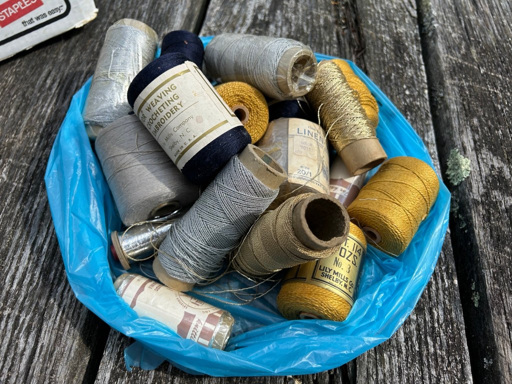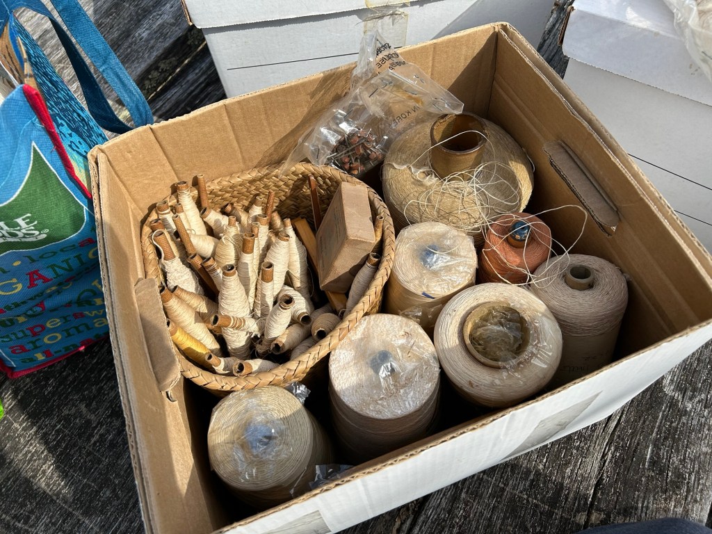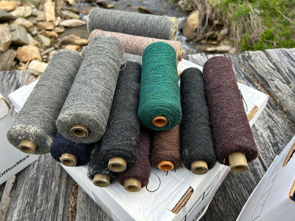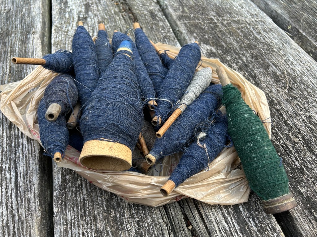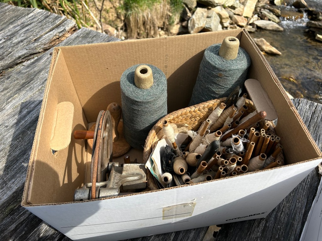 The remaining boxes had a lot of various bobbins with leftover thread still on them, different types of shuttles, and even an old bobbin winder that would be fun to clean and repair. The cones of cotton yarn still wrapped in plastic in the above picture were produced right here in North Carolina, which I think is really neat and I hope I’ll be able to do something with those as well. All in all, this was incredibly thoughtful and I’m grateful to have this shared with me and to have been given the chance to go through it and learn more about the weavers who came before me. Who knows, maybe one day my own equipment will be passed down to a new generation, each bobbin, cone, or scrap of fabric part of a story and a memory to be shared. And it’s all happening right here tucked into the mountains, along our dear Spring Creek.