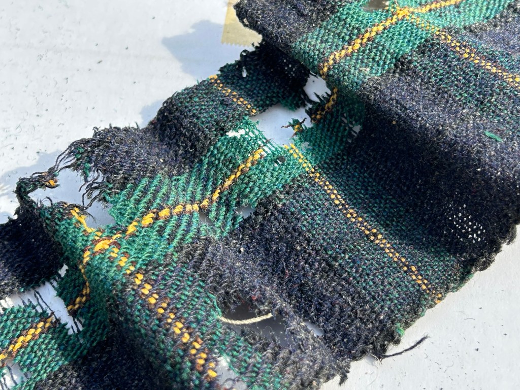 And now we get to the wool. Nancy’s grandmother, she says, used to weave incredible twill yardage that would be sewn into men’s sport coats. I did find one piece in the bottom of a box showing what this fabric looked like. This is also exactly why I am cautious about holding on to any of the wool that she gave me. It’s risky to keep it in the house because it could attract little wool-eating critters that I simply won’t tolerate.