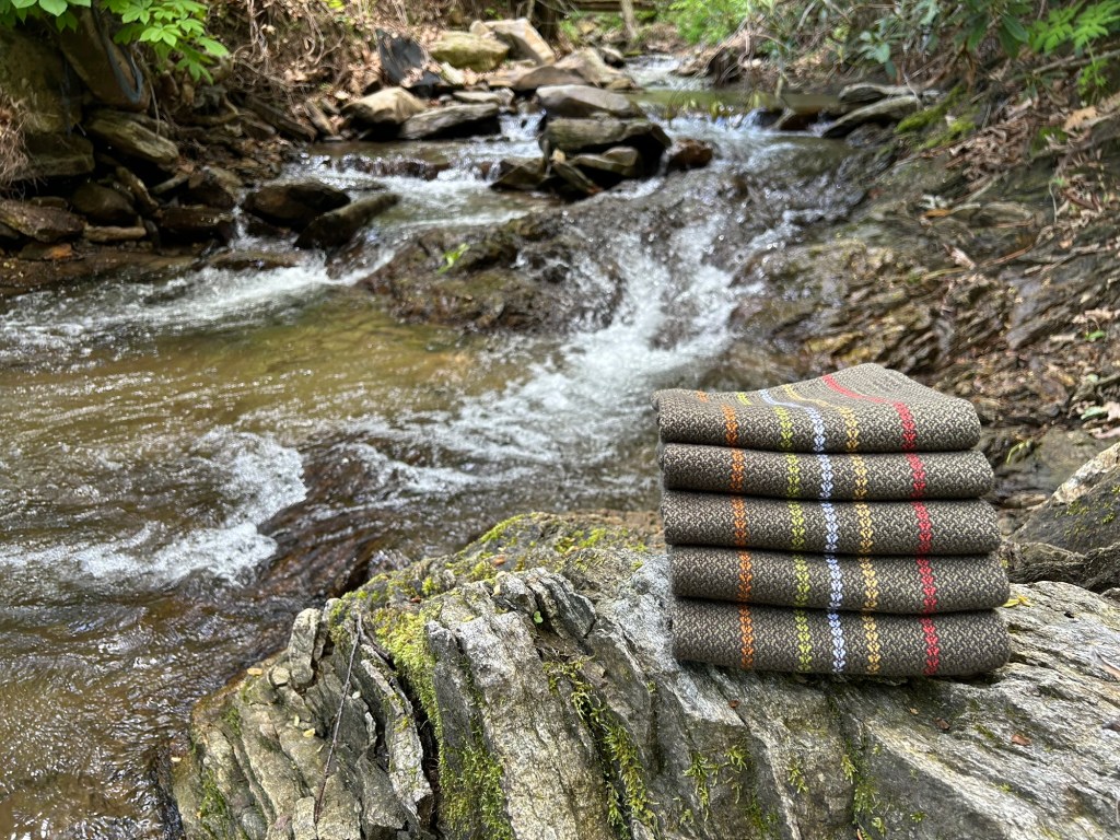 It was also nice to take these towels back to the creek and photograph them as we watch our little part of Western North Carolina heal from last year’s hurricane. The bare dirt is filling in with green, plants are returning, the birds are singing, and flowers are blooming left and right. It’s such a privilege to watch nature heal itself in my own back yard. The flowers in these towels, for me, will always be intrinsically tied to that feeling. A feeling of repair and rebirth.