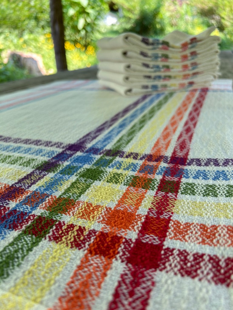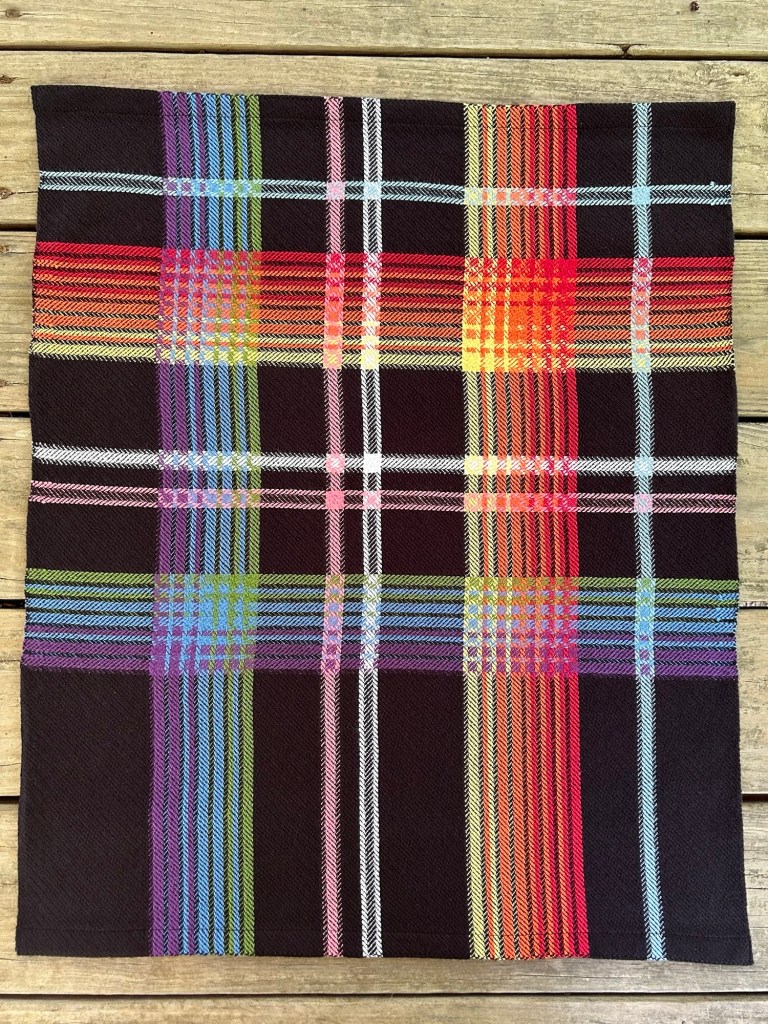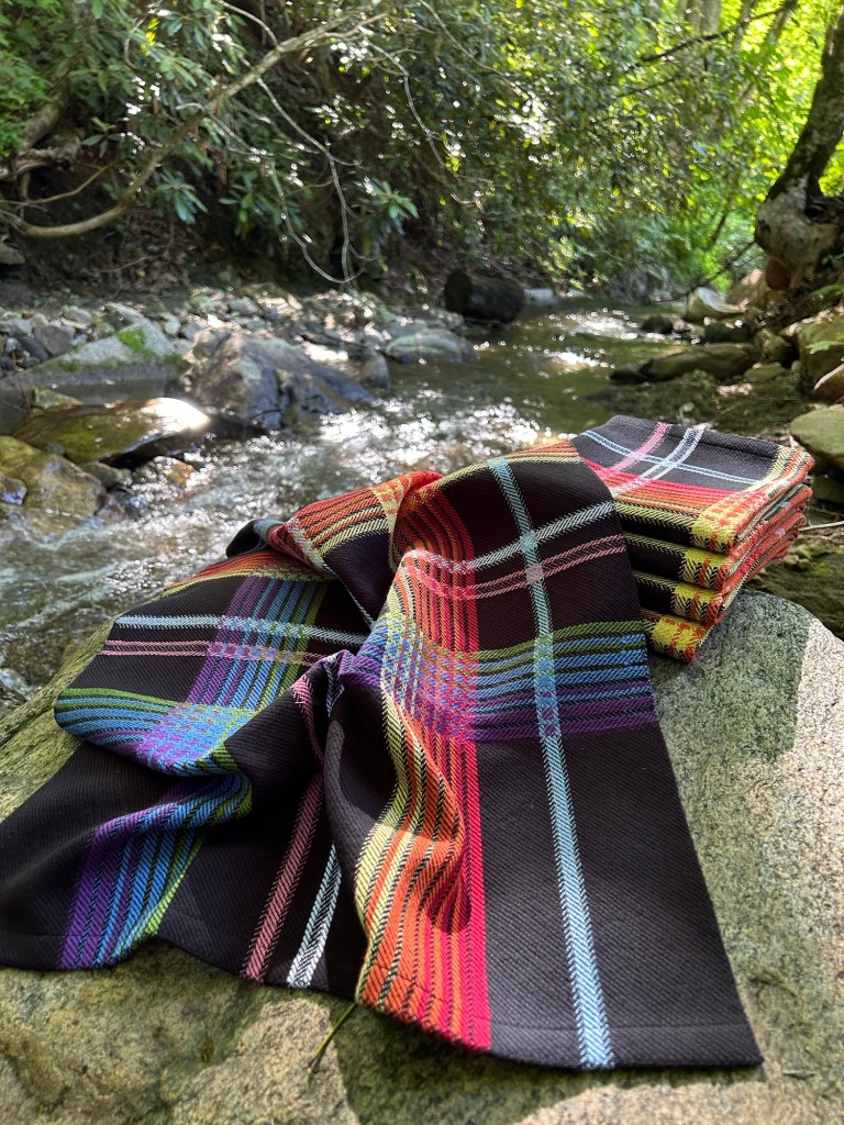 I’ve spent the past few months working my way through another very long warp on my loom. Two years ago, before I had an Etsy shop, I designed a pride-themed towel and wove enough of them to give to friends and family.