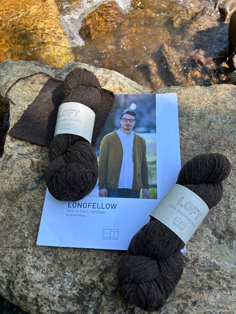 This is a sweater Kyle has wanted for a long time – Longfellow by Michele Wang. In fact, he started knitting this sweater for himself ten years ago when we were at a knitting retreat with Michele Wang. Sadly, it has been sitting for the past ten years with only about 2″ of the back complete, so it was definitely time to make this sweater a reality. Also sadly, the company that makes this yarn, Brooklyn Tweed, announced a few months ago that they were halting all yarn production effective immediately. Oh, that was such a huge blow to my heart!